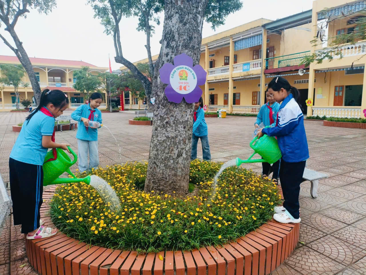 Chủ động chăm sóc: Các chi đội đã rất chủ động chăm sóc công trình, tưới cây, vệ sinh hàng ngày, thậm chí trồng thêm nhiều cây hoa nhỏ khiến cho khung cảnh sân trường thêm rực rỡ sắc màu.