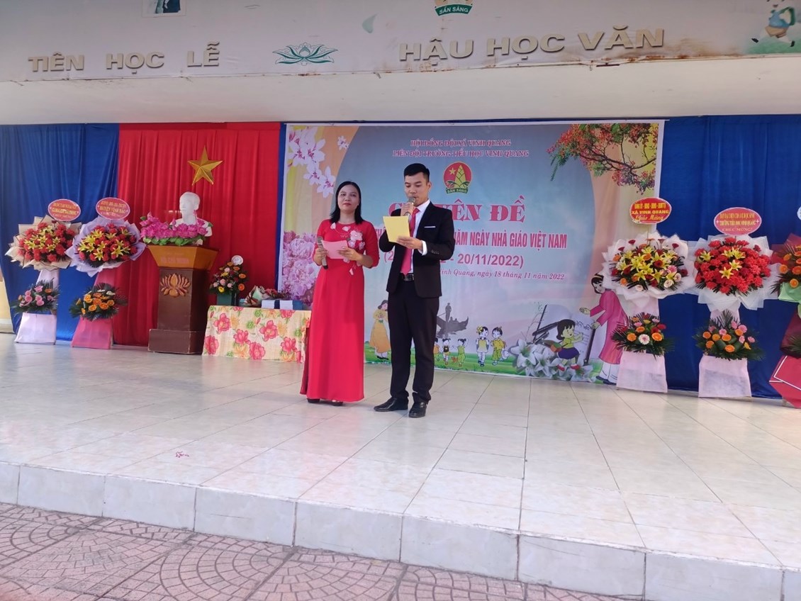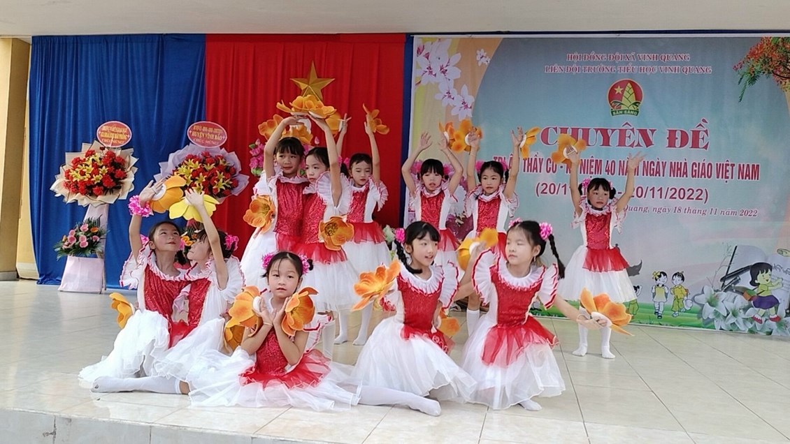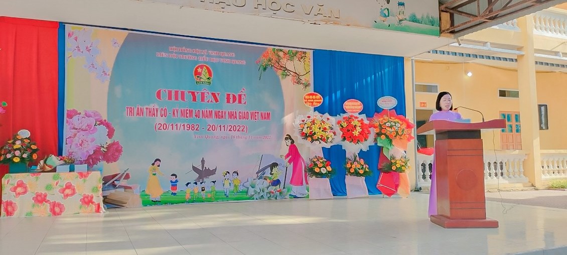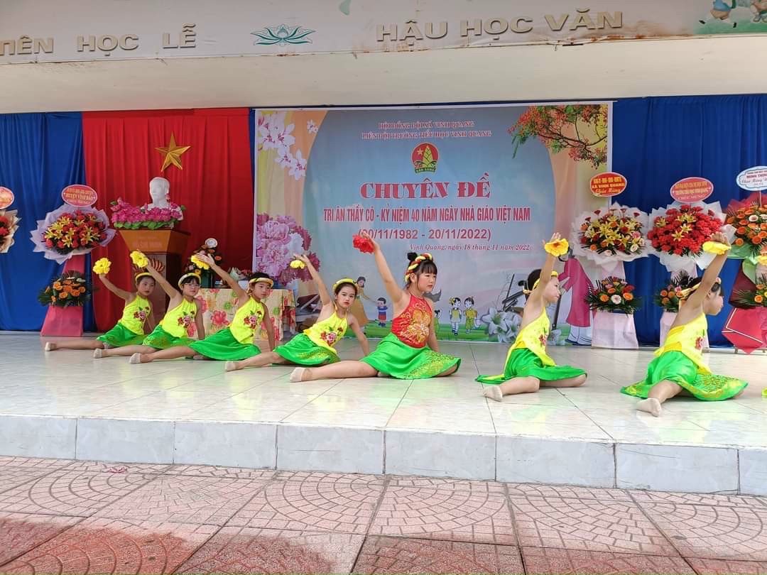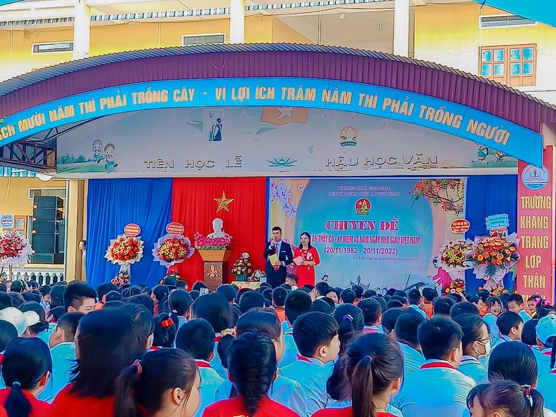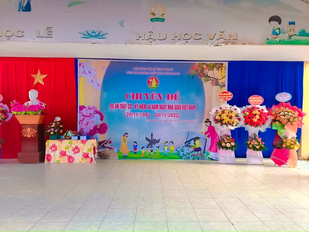Hòa trong không khí cả nước chào mừng 40 năm ngày Nhà giáo Việt Nam (20/11/1982 - 20/11/2022). Sáng ngày 20/11, trường Tiểu học Vinh Quang long trọng tổ chức "Lễ kỷ niệm ngày nhà giáo Việt Nam" nhằm ôn lại truyện thống cao đẹp của nghề dạy học, tôn vinh và tỏ lòng biết ơn sâu sắc đối với thế hệ các thầy cô giáo trong sự nghiệp trồng người. Sau đây là một số hình ảnh trong buổi lễ: