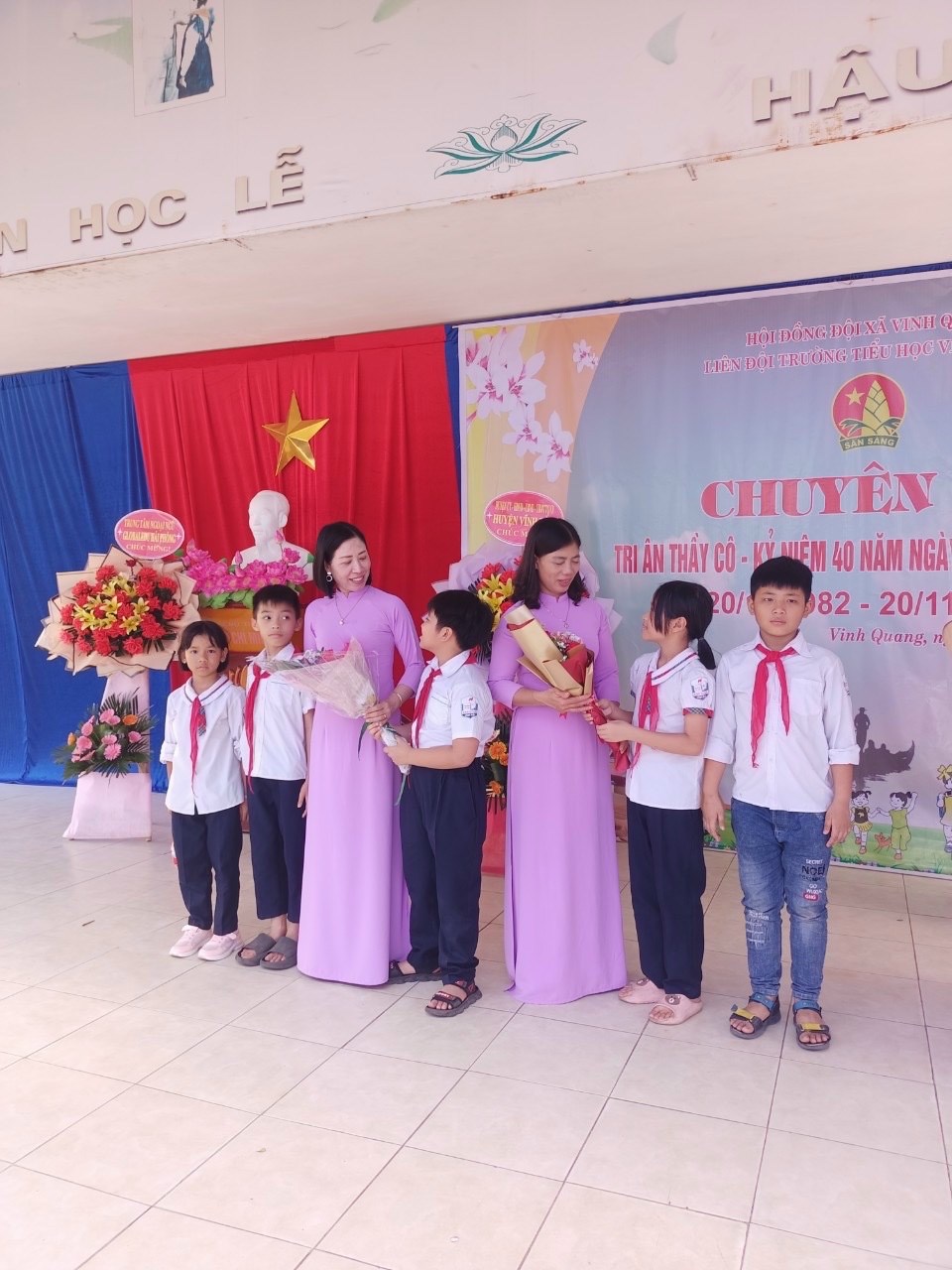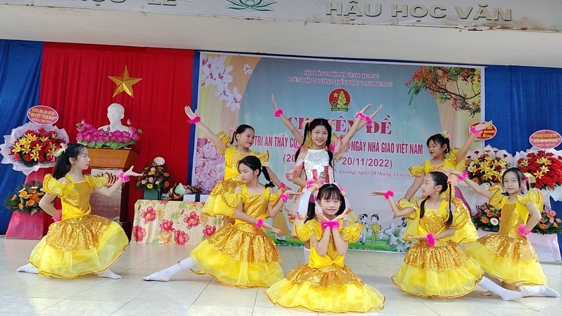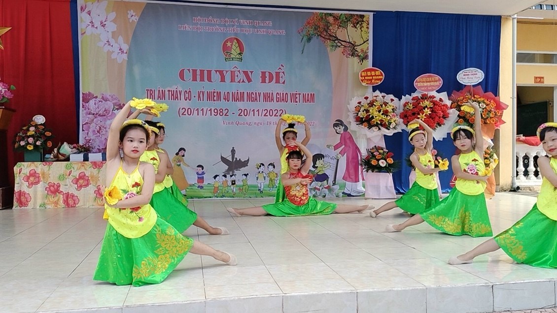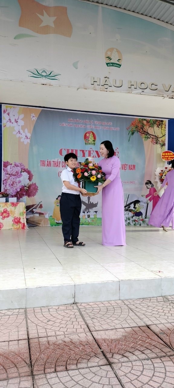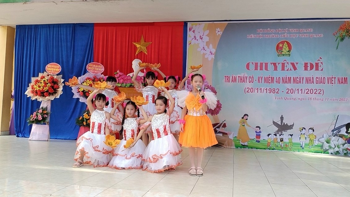 Hòa trong không khí cả nước chào mừng 40 năm ngày Nhà giáo Việt Nam (20/11/1982 - 20/11/2022). Sáng ngày 20/11, trường Tiểu học Vinh Quang long trọng tổ chức "Lễ kỷ niệm ngày nhà giáo Việt Nam" nhằm ôn lại truyện thống cao đẹp của nghề dạy học, tôn vinh và tỏ lòng biết ơn sâu sắc đối với thế hệ các thầy cô giáo trong sự nghiệp trồng người. Sau đây là một số hình ảnh trong buổi lễ: