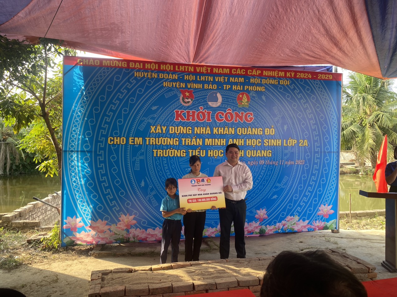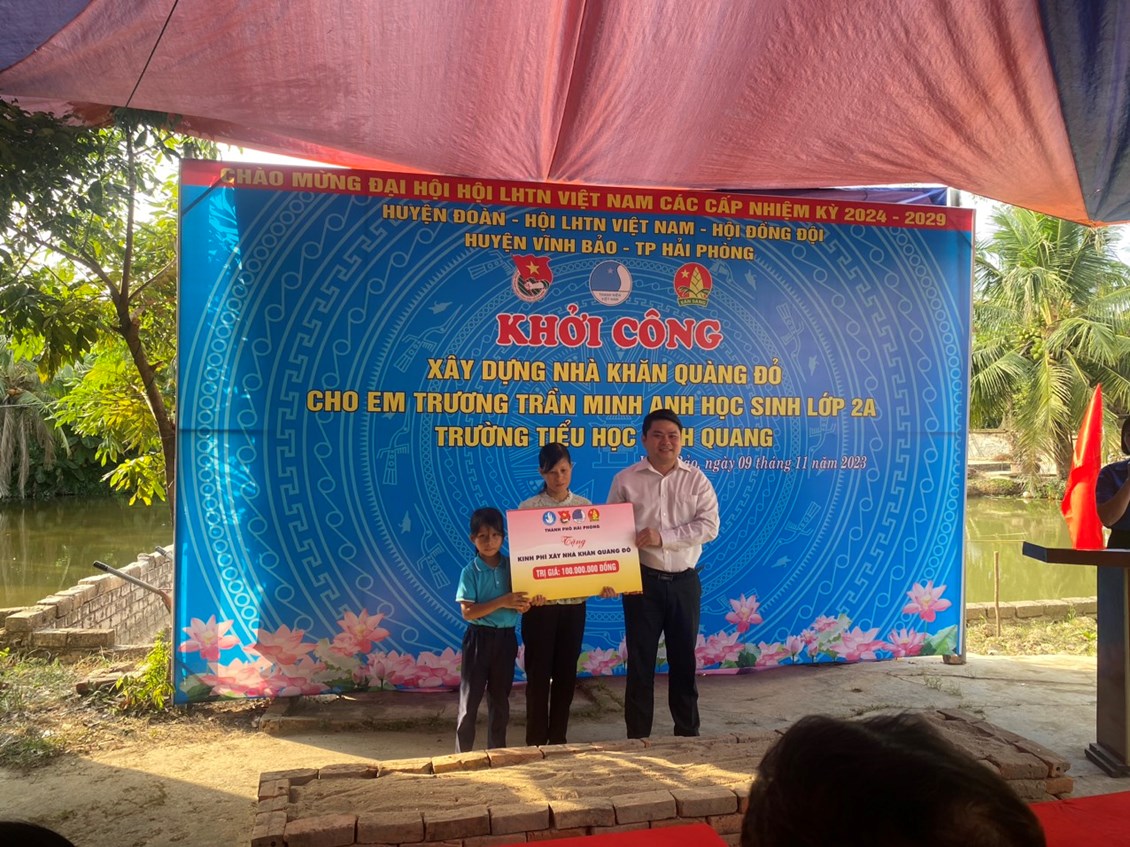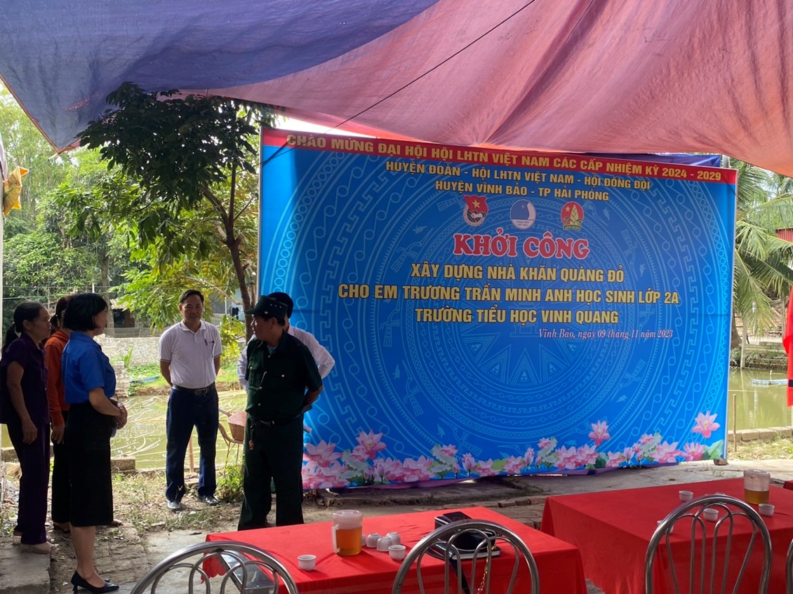 Em Trương Trần Minh Anh là hoc sinh lớp 2A trường Tiểu học Vinh Quang – xã Vinh Quang – Huyện Vĩnh Bảo – Thành phố Hải Phòng. Em là con gái của chị Trần Thị Thêu cư trú tại thôn Nhân Mễ xã Vinh Quang huyện Vĩnh Bảo và thuộc gia đình hộ cận nghèo của địa phương đã nhiều năm nay. Hiện tại gia đình em Trương Trần Minh Anh đang ở nhờ gia đình bà ngoại và các anh chị em, nhưng ngôi nhà đã xuống cấp và chật chội. Mỗi khi mưa gió lại bị dột nhà lại đông các thành viên trong một gia đình với nhiều thế hệ. Với hoàn cảnh gia đình rất khó khăn, bố của em Minh Anh bị bệnh hiểm nghèo đã mất. Trong thời gian bố cháu bệnh nặng đã làm cho kinh tế gia đình suy kiệt nên 3 mẹ con lại càng khó khăn về kinh tế lẫn tình cảm, 3 mẹ con bồng bế nhau về nhà bà ngoại và các anh chị em để nương nhờ. Khi về tới quê nhà, gia đình cũng được sự quan tâm của địa phương và các đoàn thể đã hỗ trợ về tinh thần cũng như vật chất để cháu Minh Anh được đi học. Gia đình em Minh Anh nay được sự quan tâm của Ban giám hiệu nhà trường, cô tổng phụ trách và cô giáo chủ nhiệm lớp 2A đã xét và làm đơn gửi Ban lãnh đạo cấp trên xét đề nghị Xây dựng Nhà khăn quàng đỏ hỗ trợ kinh phí cho gia đình em để xây dựng nhà ở. Huyện đoàn đã về khảo sát tại gia đình và tiếp nhận kinh phí hỗ trợ từ thành đoàn Hải Phòng. Đến nay gia đình em Minh Anh được khởi công ngôi nhà để 3 mẹ con yên tâm sinh sống cho các cháu được học tập. Dự kiến ngôi nhà sẽ xây dựng với diện tích 40m2 trong thời gian 3 tháng.