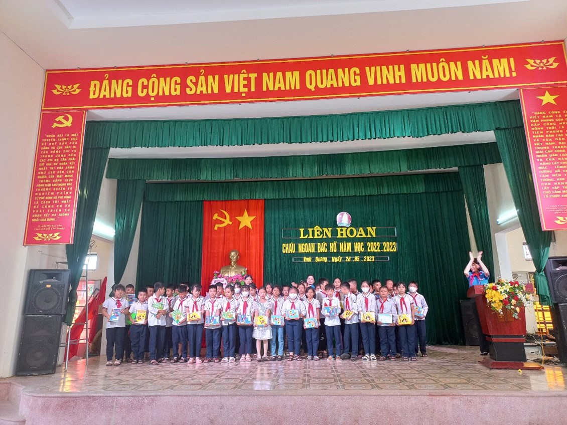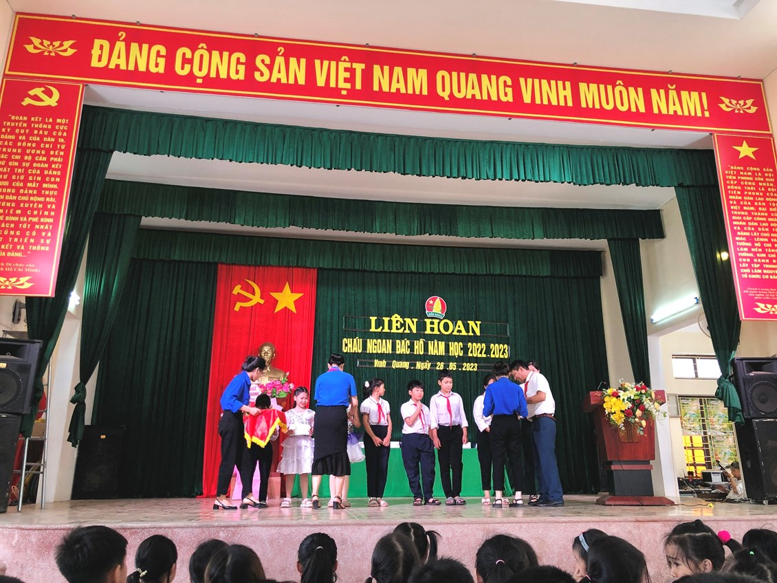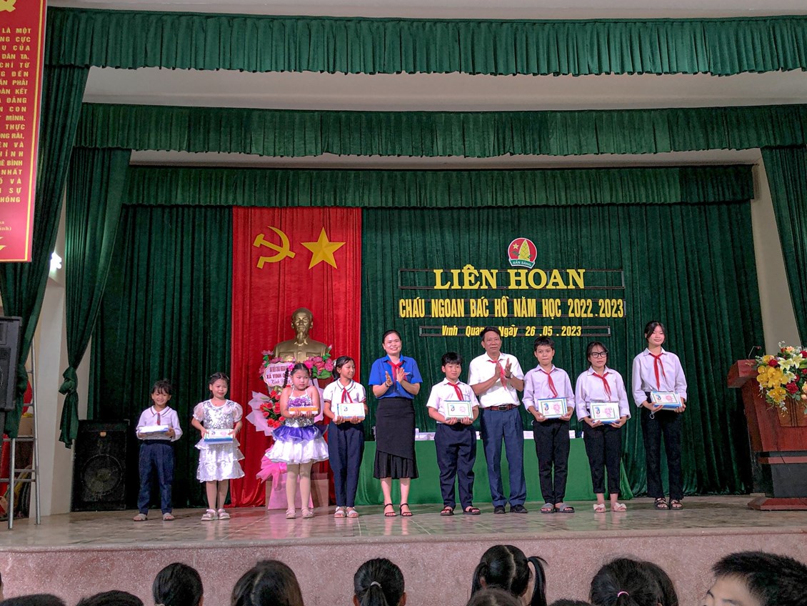 Đại diện các khối lên nhận giấy khen cháu ngoan Bác Hồ