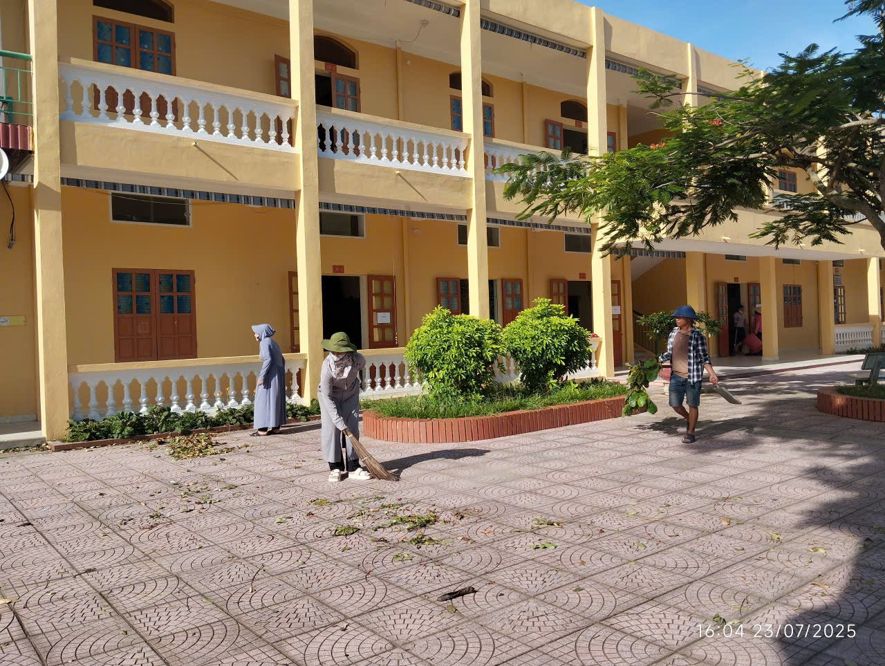Ngay sau khi mưa bão qua đi, dưới sự chỉ đạo trực tiếp của cô Nguyễn Thị Thu Hồng – Hiệu trưởng nhà trường, toàn thể cán bộ, giáo viên, nhân viên đã khẩn trương ra quân tổng vệ sinh, dọn dẹp sân trường, phát quang cây xanh, thu gom rác thải, kiểm tra hệ thống điện, nước, mái tôn, cửa sổ… nhằm đảm bảo môi trường học tập an toàn và sạch đẹp cho các em học sinh.