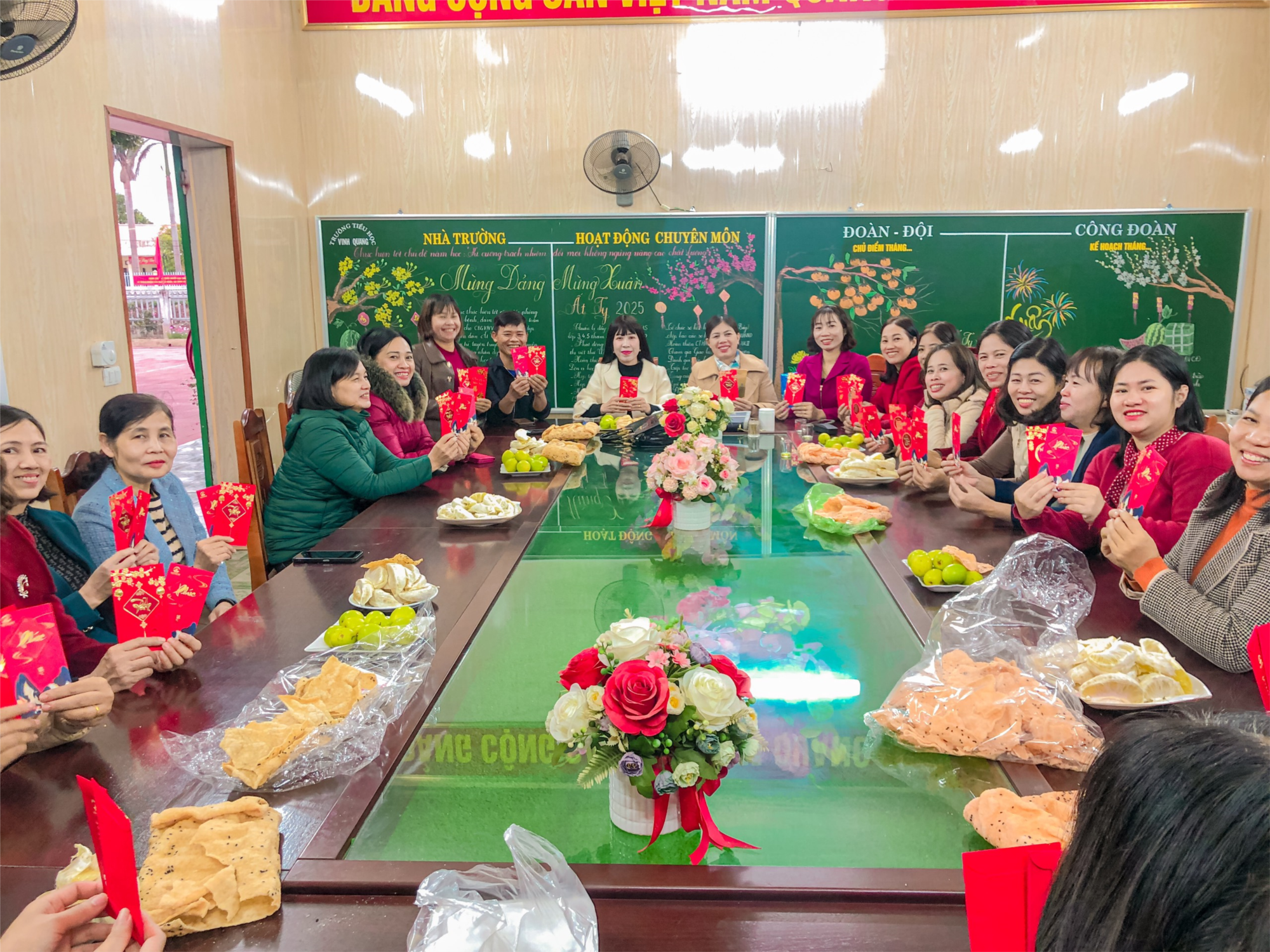 Trong không khí ấm áp của những ngày đầu năm mới, trường Tiểu học Vinh Quang tổ chức tiếp xúc CB - GV - NV đầu xuân để cùng nhau chúc mừng một mùa xuân mới đầy hứa hẹn và ngập tràn hy vọng. Xuân về, mang theo bao niềm vui, sức khỏe, và thành công mới. Nhân dịp này, Cô giáo Nguyễn Thị Thu Hồng - Bí thư chi bộ - Hiệu trưởng nhà trường thay mặt BGH gửi đến tất cả quý thầy cô lời chúc sức khỏe, hạnh phúc, và thành công trong công tác giảng dạy cũng như trong cuộc sống.