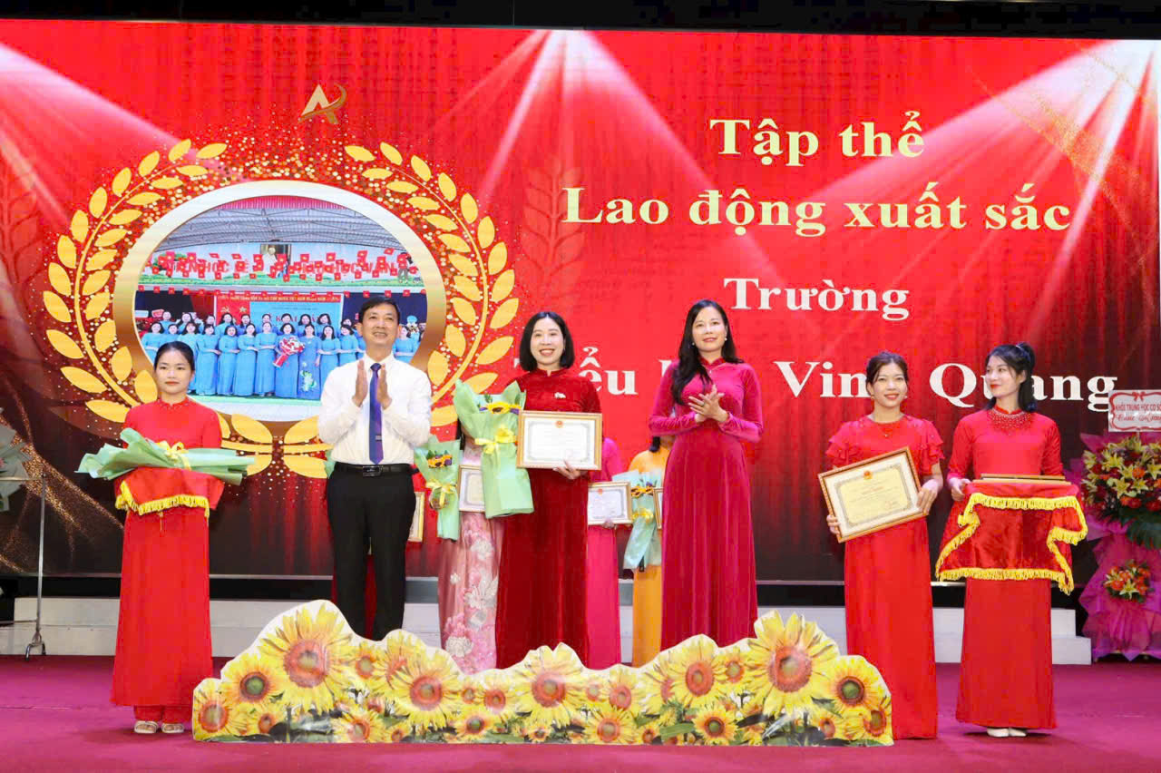 Trong dịp này, Trường Tiểu học Vinh Quang vinh dự được UBND xã trao tặng danh hiệu “Tập thể Lao động xuất sắc” – phần thưởng cao quý ghi nhận sự nỗ lực bền bỉ của tập thể cán bộ, giáo viên và học sinh nhà trường.